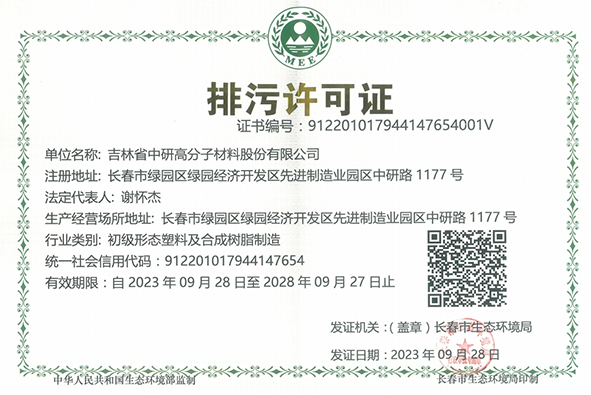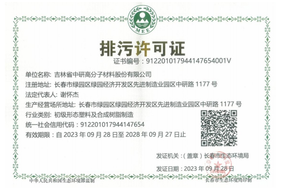 吉林省中研高分子材料股份有限公司—2023年環保信息公示