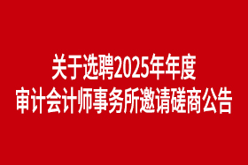 根據財政部《國有企業、上市公司選聘會計師事務所管理辦法》【財會〔2023〕4號】等有關規定,吉林省中研高分子材料股份有限公司(以下簡稱“公司”)原聘用會計師事務所已達到聘用年限,現擬開展邀請磋商選聘年報審計及內控審計會計師事務所。 -