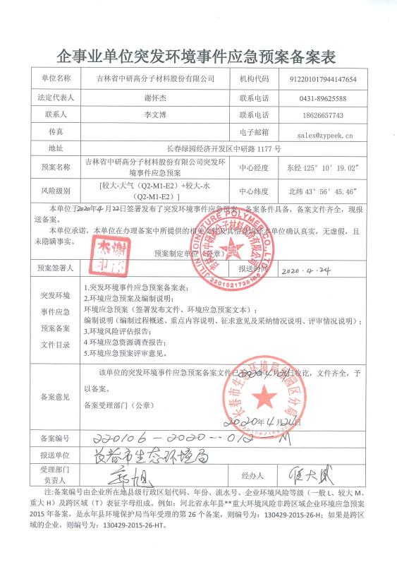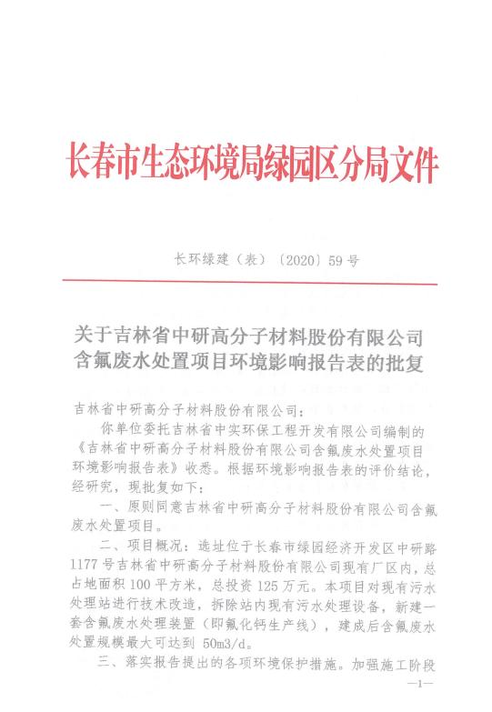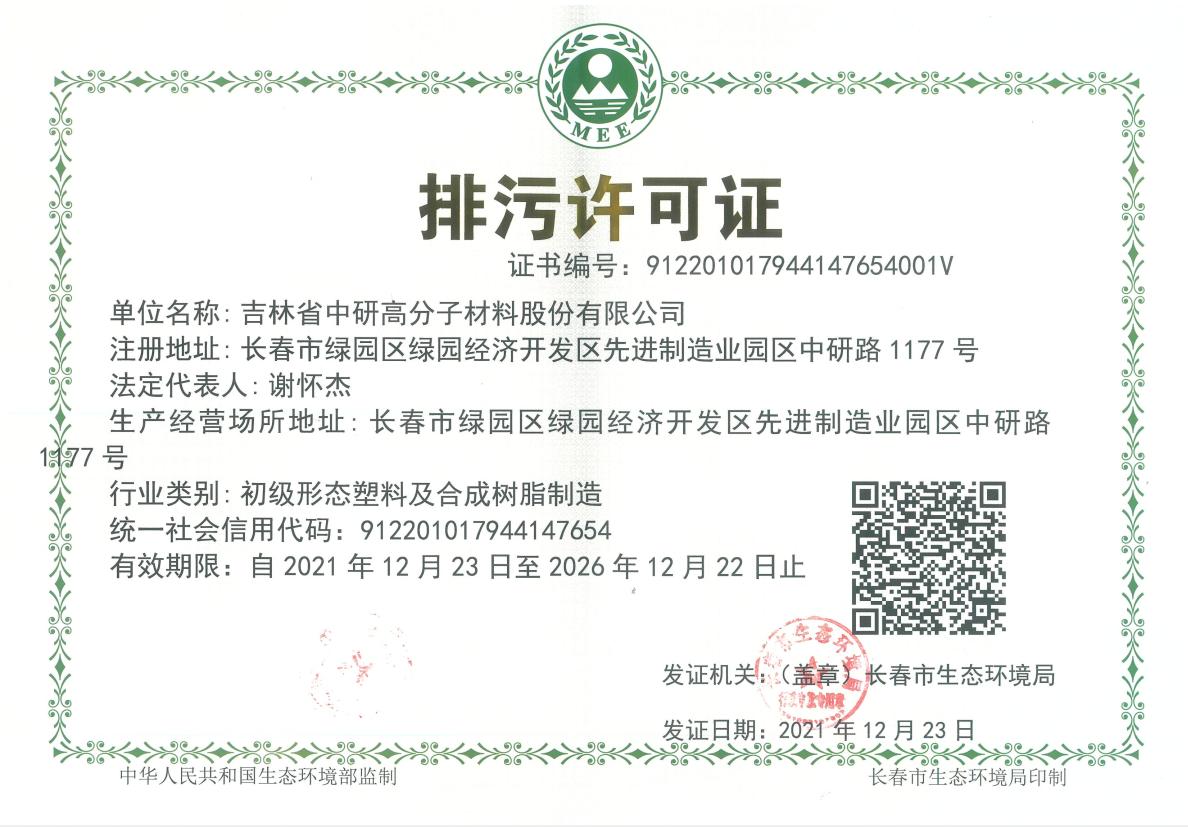 吉林省中研高分子材料股份有限公司—2023年環保信息公示
